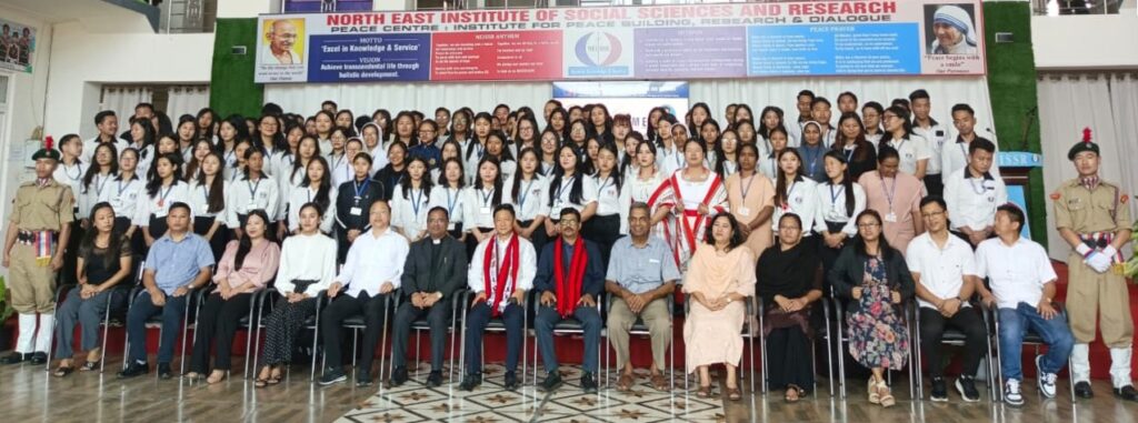 The programme commenced with a welcome address by Dr. Fr. C.P. Anto, Principal of NEISSR, who presented the institute as a pioneering centre for peacebuilding and social work education since 2014. He emphasized NEISSR’s unique integration of academic excellence with community engagement, research, and skill development, and highlighted the consistent success of its students in national-level examinations. Outlining a forward-looking vision aligned with the National Education Policy 2020, he announced the expansion of the BSW programme into a four-year course and the introduction of a Bachelor’s degree in Journalism and Mass Communication, reaffirming the institute’s commitment to nurturing skilled, ethical, and socially responsible professionals.